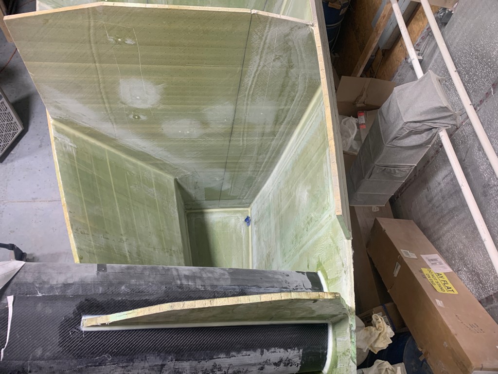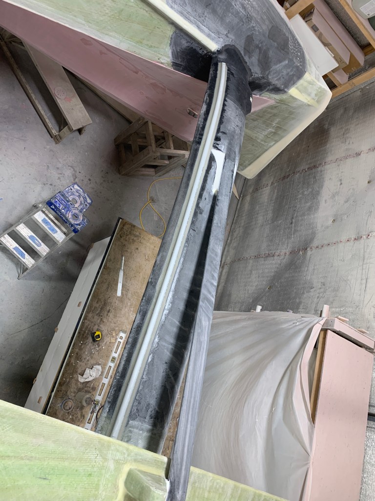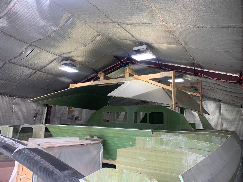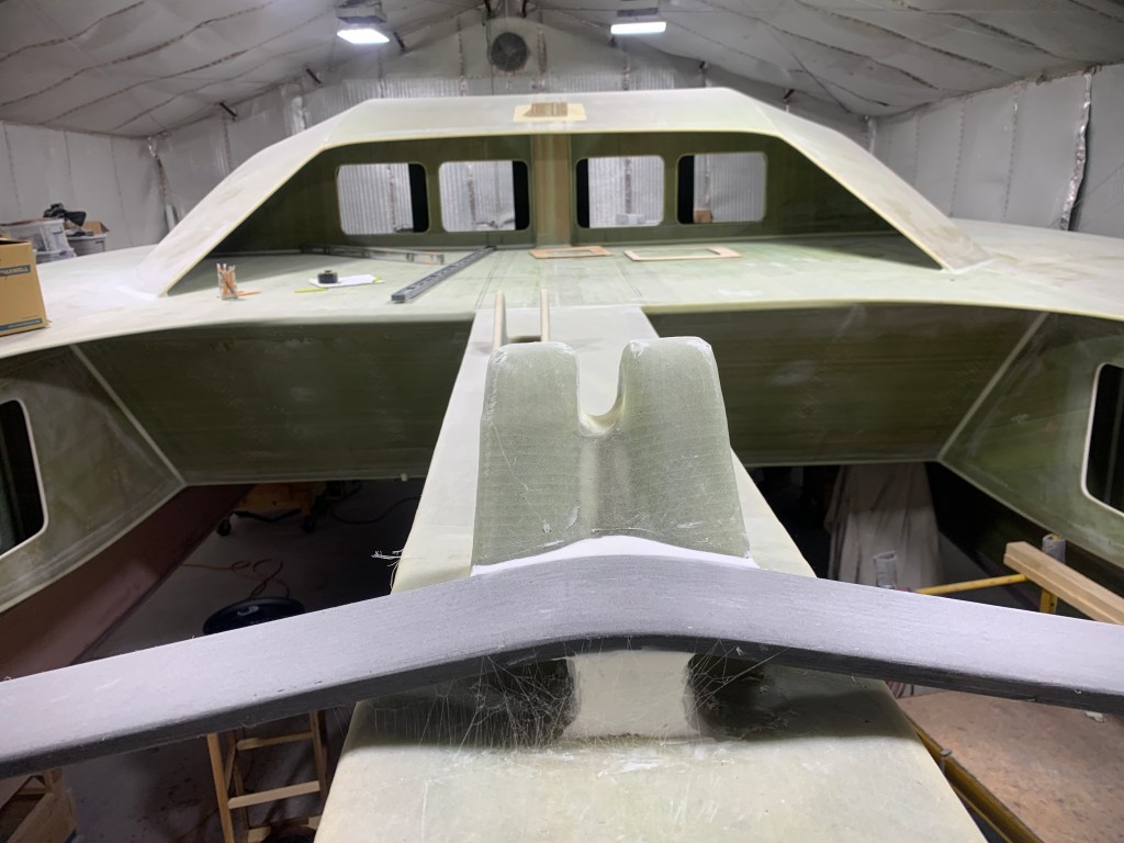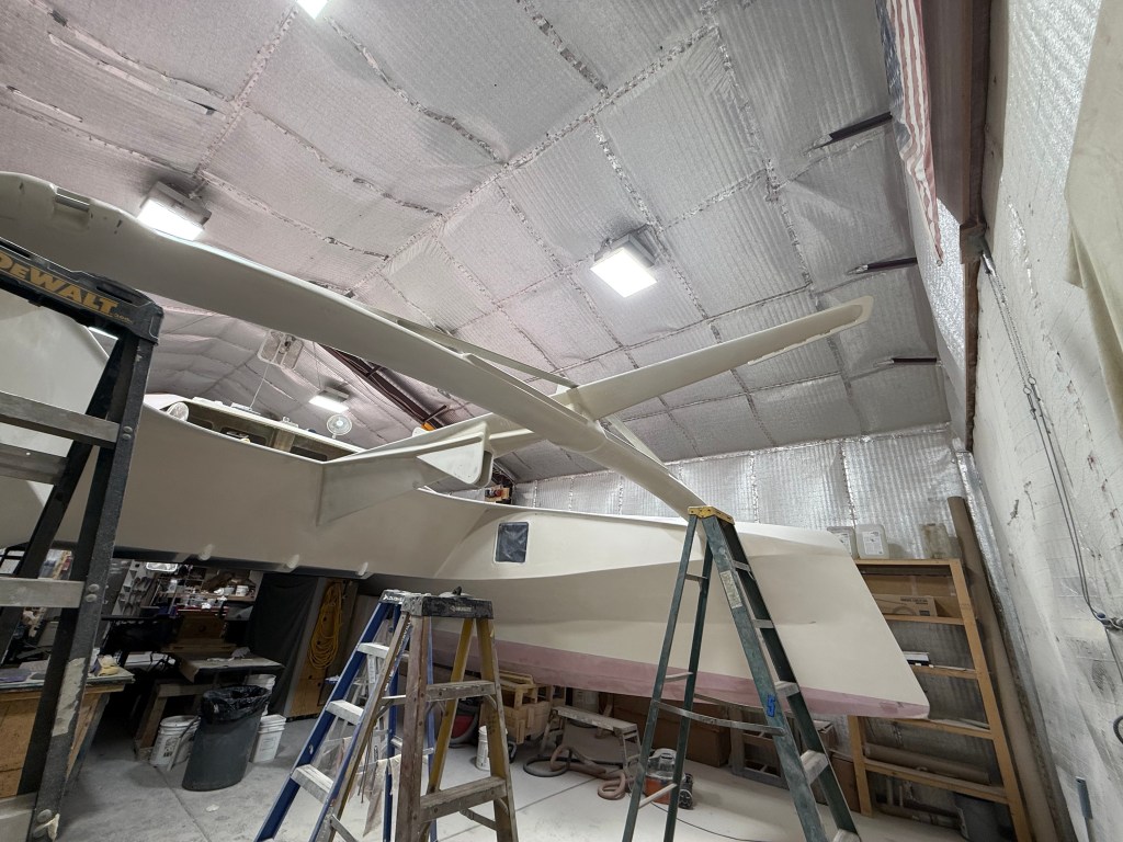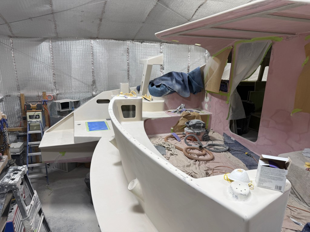 We post cure the Yacht to ensure the peak performance for our resin. Post-curing enhances physical strength and thermal properties beyond what’s achievable with room-temperature cures alone. Our post cure was a slow increase in heat over 24 hour to 104F/40C. Then we ramped up to 10 140F/60C for 10 hours. By performing this we ensure the boat will never see blead through even with dark color paint.