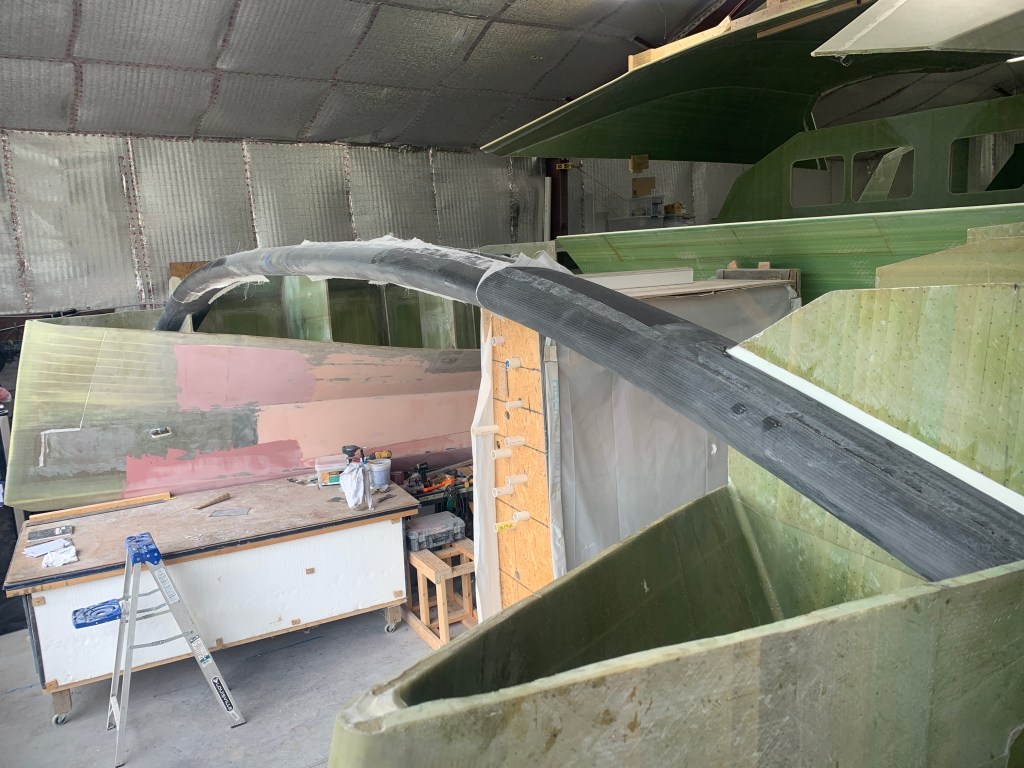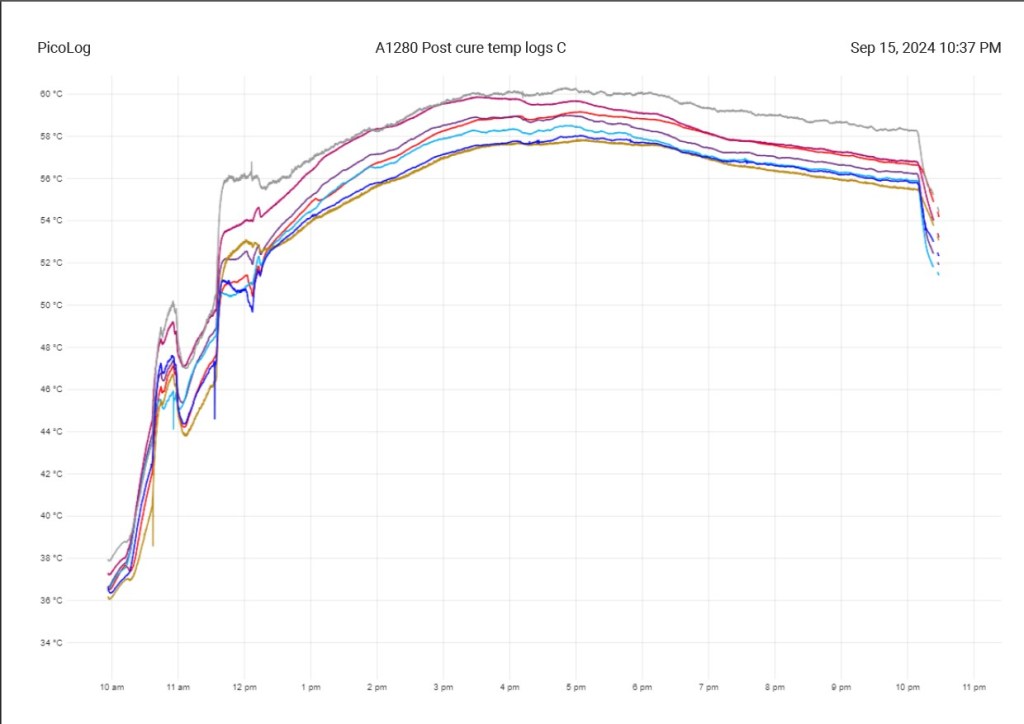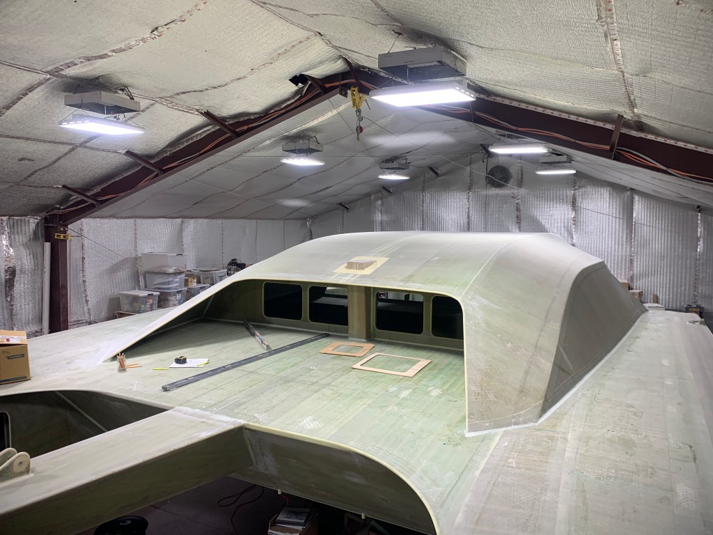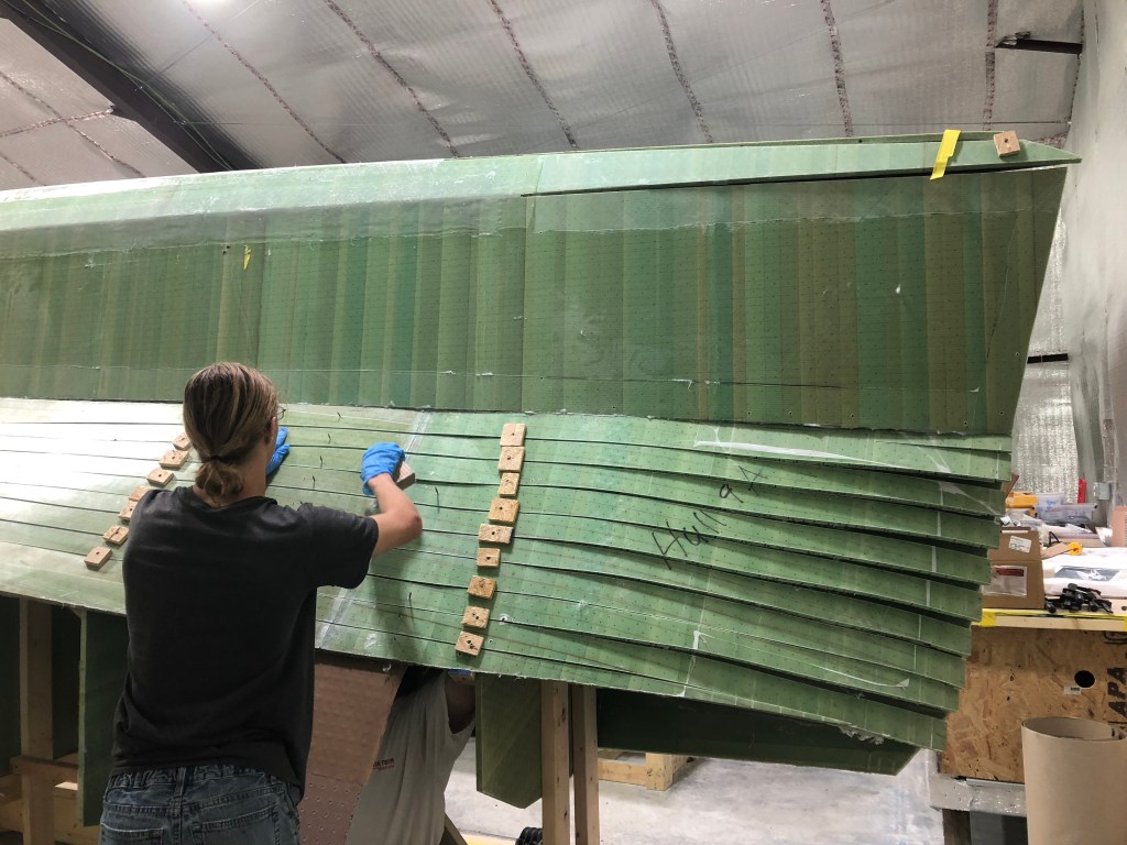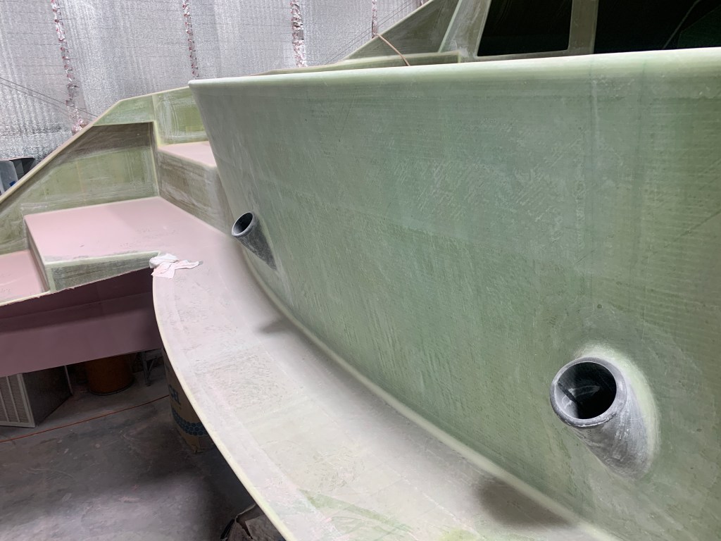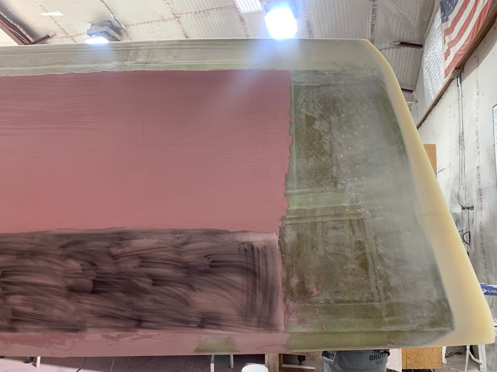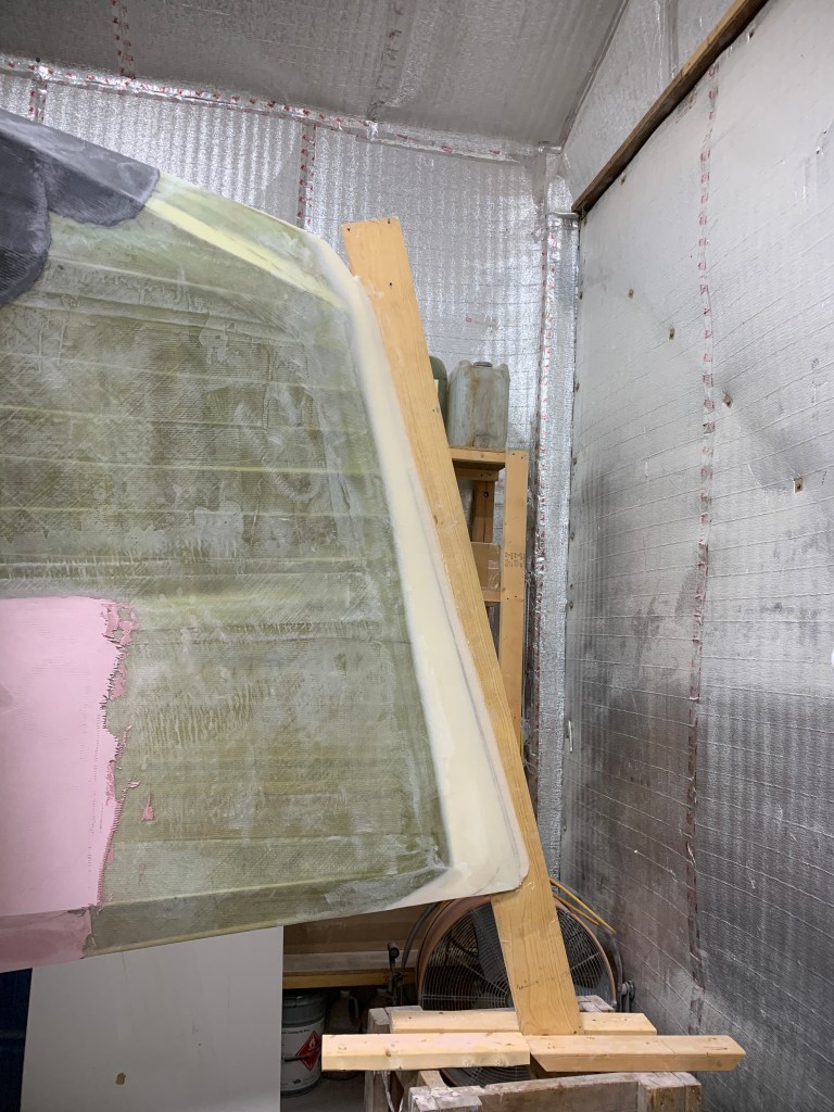 We post cure the Yacht to ensure the peak performance for our resin. Post-curing enhances physical strength and thermal properties beyond what’s achievable with room-temperature cures alone. Our post cure was a slow increase in heat over 24 hour to 104F/40C. Then we ramped up to 10 140F/60C for 10 hours. By performing this we ensure the boat will never see blead through even with dark color paint.