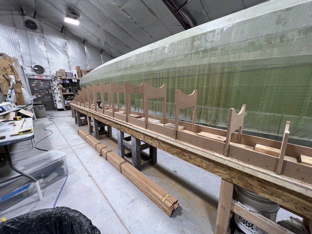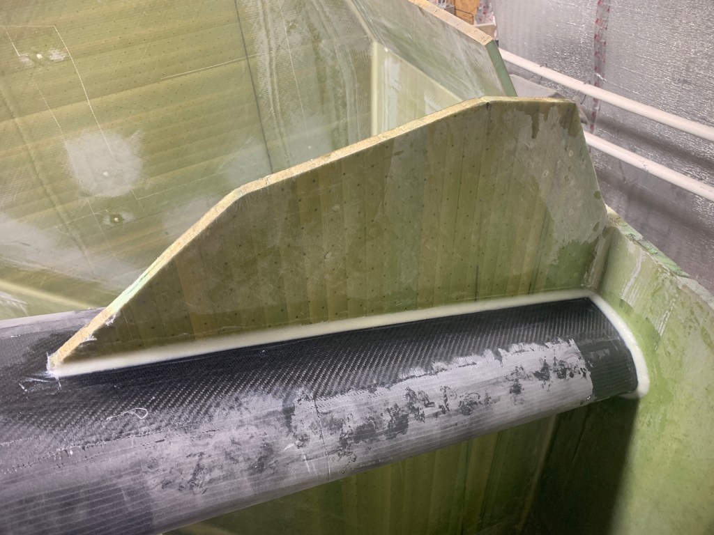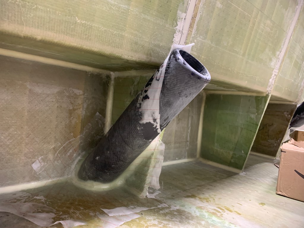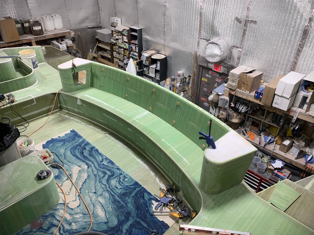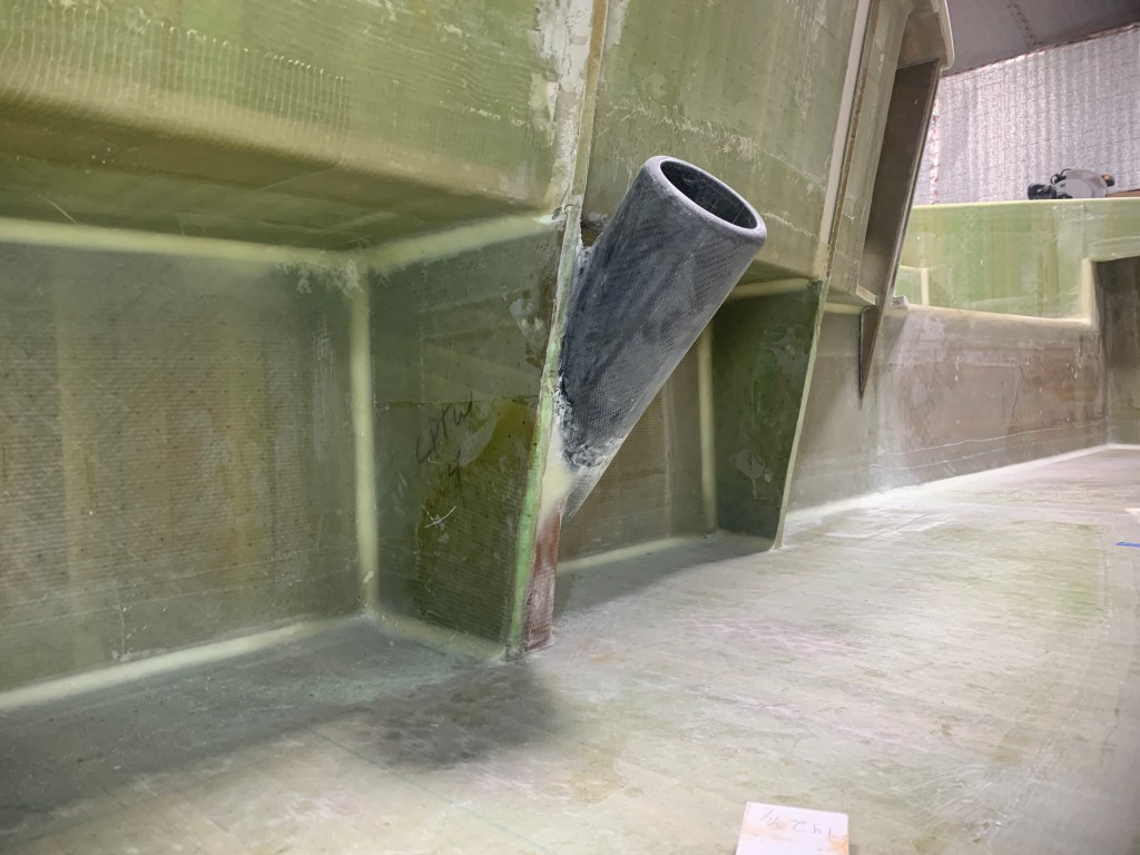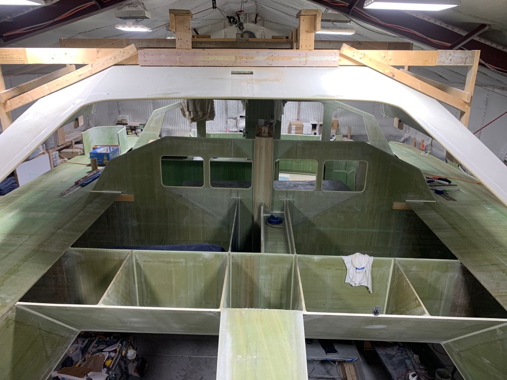 We post cure the Yacht to ensure the peak performance for our resin. Post-curing enhances physical strength and thermal properties beyond what’s achievable with room-temperature cures alone. Our post cure was a slow increase in heat over 24 hour to 104F/40C. Then we ramped up to 10 140F/60C for 10 hours. By performing this we ensure the boat will never see blead through even with dark color paint.